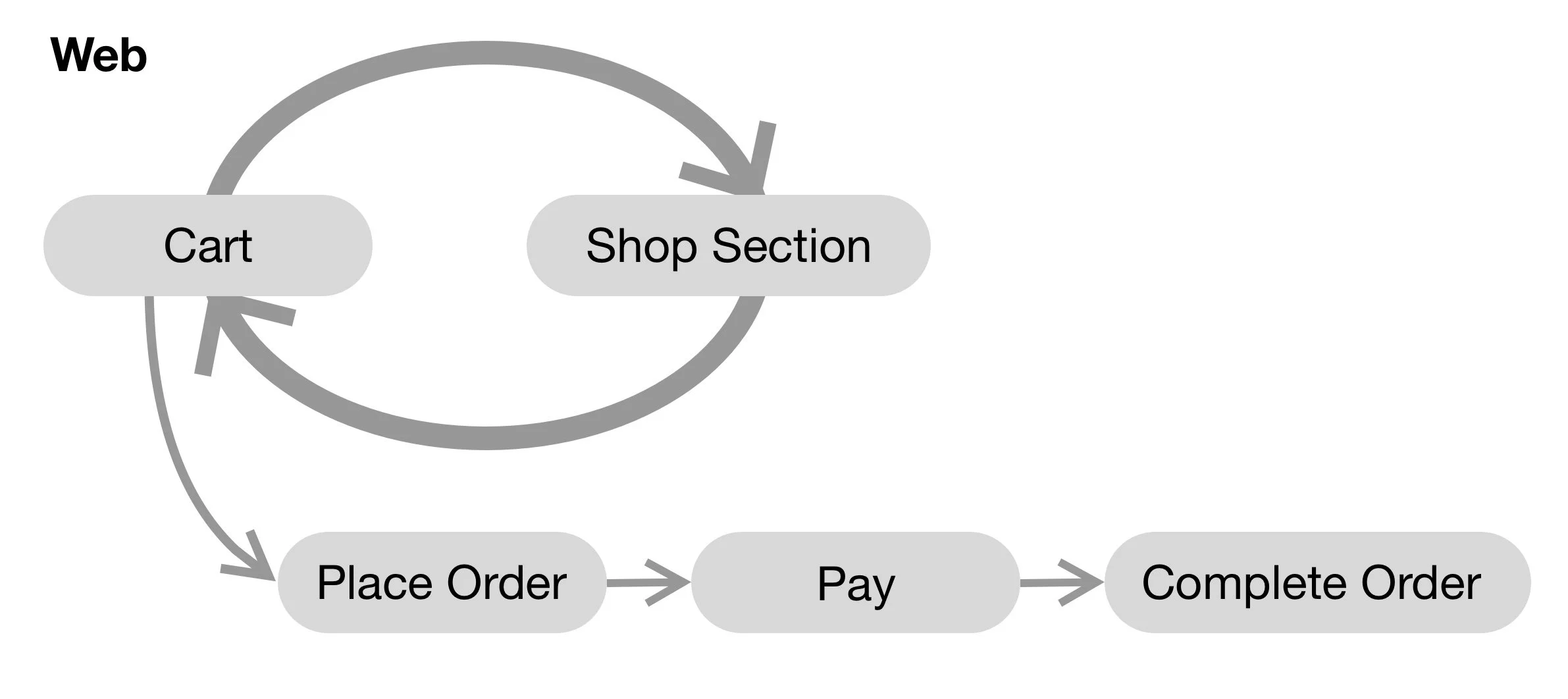 Goal orientation flow on the app: focusing on checkout process while they might finish search and peak process on the device with bigger screen.