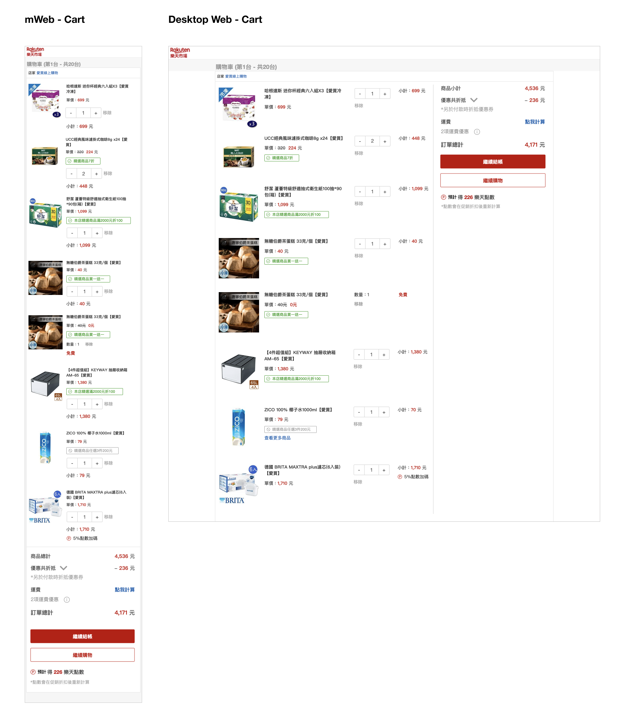 As Rakuten Taiwan's core business is e-commerce, the goal for this project was increasing GMS and conversion rate by improving checkout process.