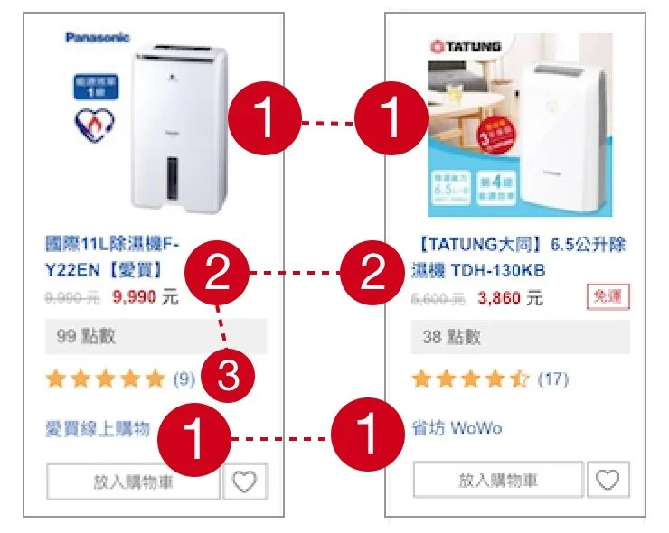 Users were less concentrate on scanning product list and checking if results relevant to their searching. Variety color for product information, font size and image size made users harder for efficient scanning.