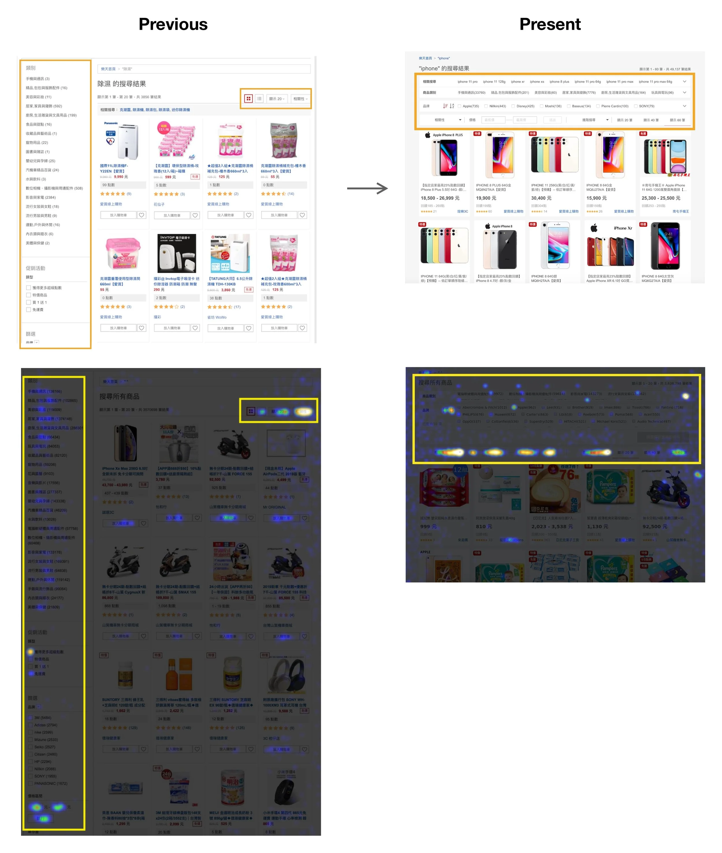 Beside the page redesign, the category structure couldn't fulfill needs from merchants, consumers and marketing strategy for searching products. The challenges for UX design were: