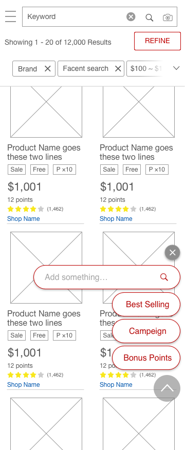 At the start of the project we had some requirements for the new search feature. Without pre-exist user behavior data, I interviewed 12 existing shoppers to understand how they explore search on the platform.