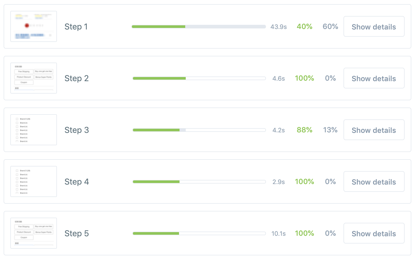 Understand which step blocked shoppers from task completion.
