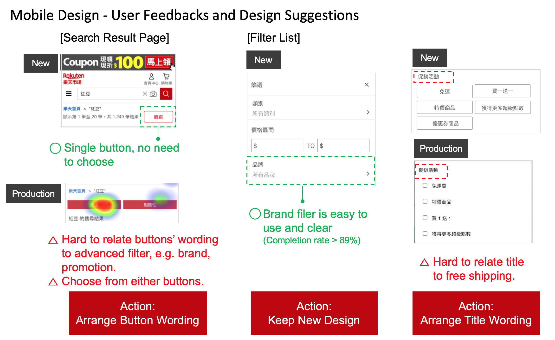 The usability testing comparison result of advance search function for production and new design on mobile website