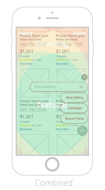 The indications show how users scan through product cards while scanning for the target product