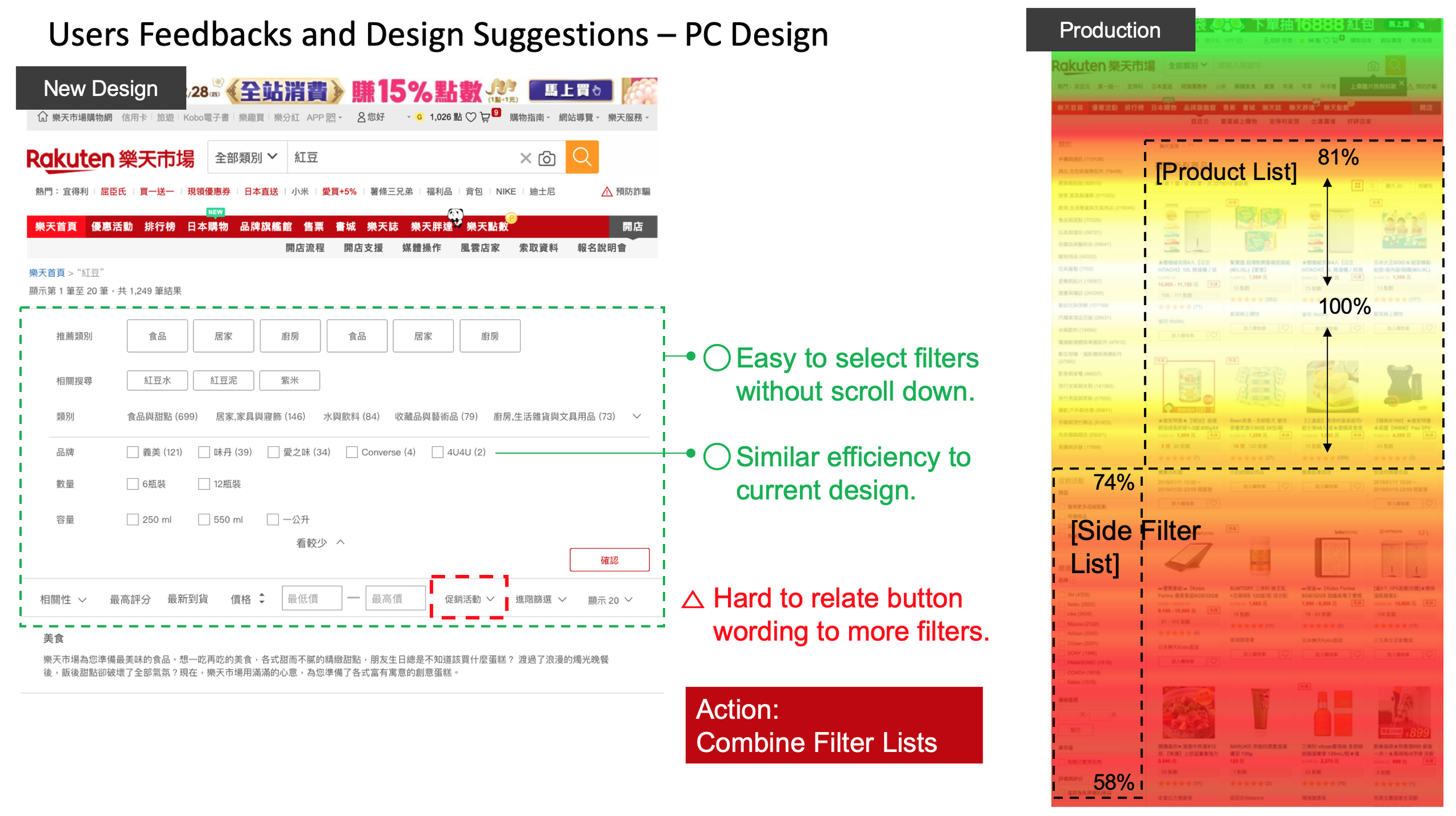 Users can choose from search category and filter with the area of above fold in new layout which solved the paipoint on existing desktop production website.